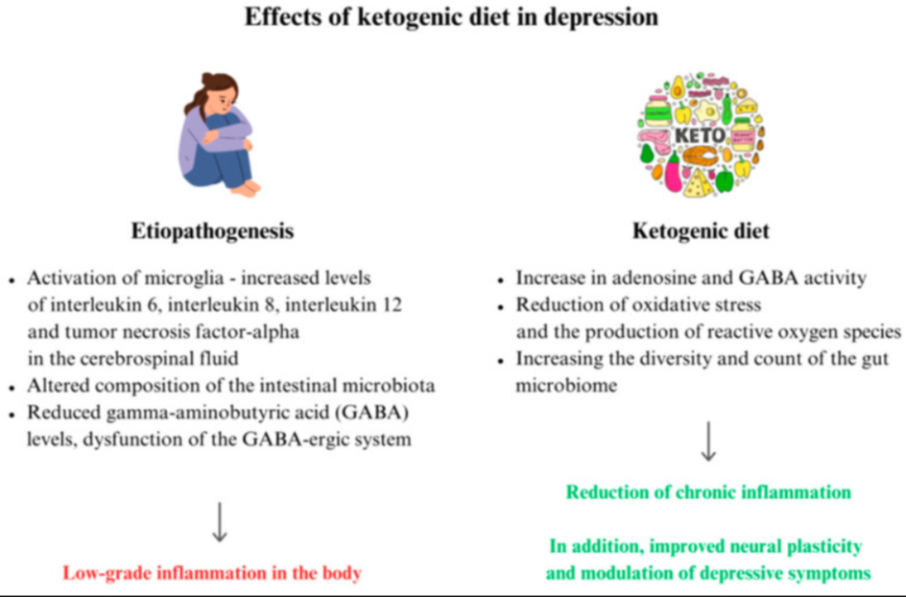 Studies show that ketogenic diet can help individuals suffering from depression in a few ways: