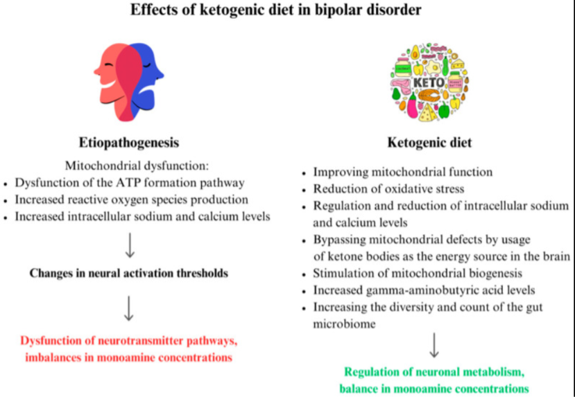 - In some patients following a ketogenic diet, the frequency and intensity of bipolar episodes decreased.